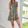 Women's Casual Fashion Round Neck Short Sleeve Print Short Dress