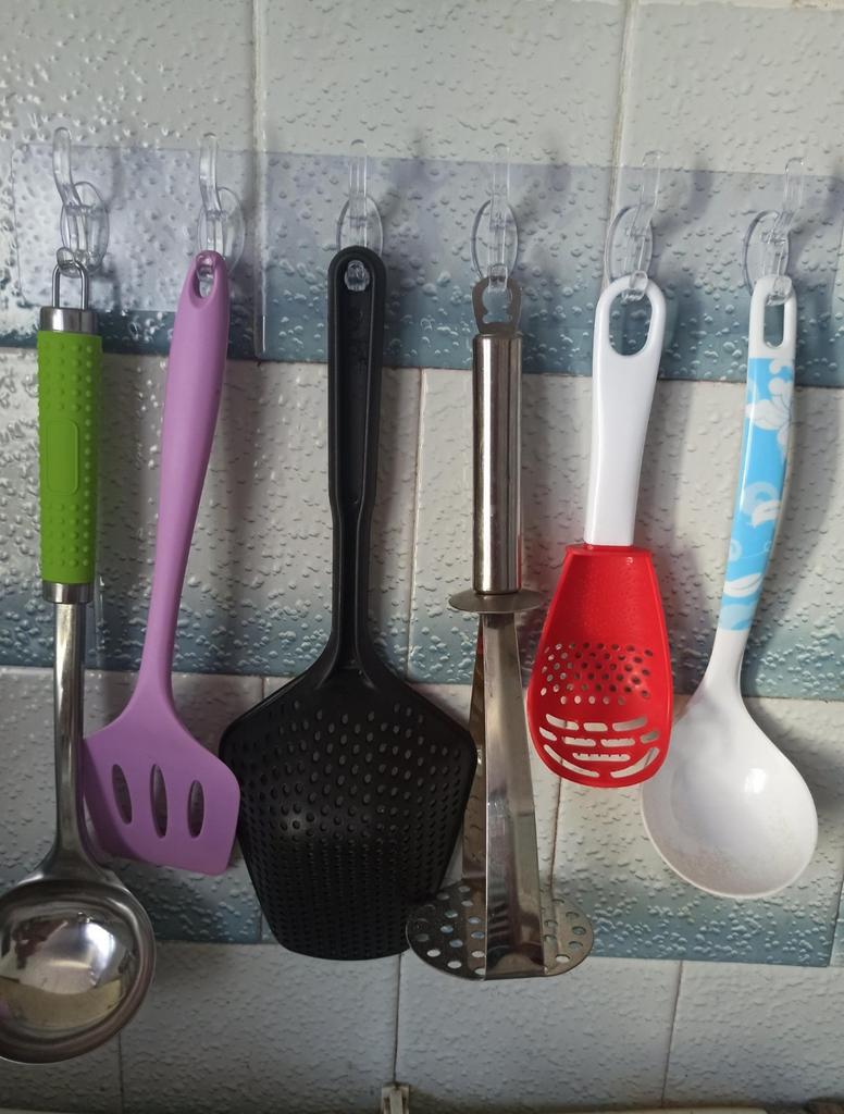 And thing for the kitchen Luv has 6 hooks for hanging The hooks can be stuck above the door, in the kitchen, and more... Made of plastic material A high-quality and good product recommended to buy! The product arrived to me with fast and secure delivery 📦