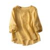 Women's Solid Color Cotton And Linen Short-sleeved Embroidered Retro Breathable T-shirt Round Neck Top — buy online with free worldwide shipping!