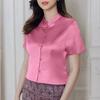 ZANZEA Women Summer Stand Collar Casual Short Sleeve Satin Blouse