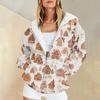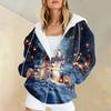 Ladies Fashion Casual Christmas Print Sweatshirt Autumn Winter Long Sleeve Cardigan Jacket With Pocket Zipper Hoodie Jacket
