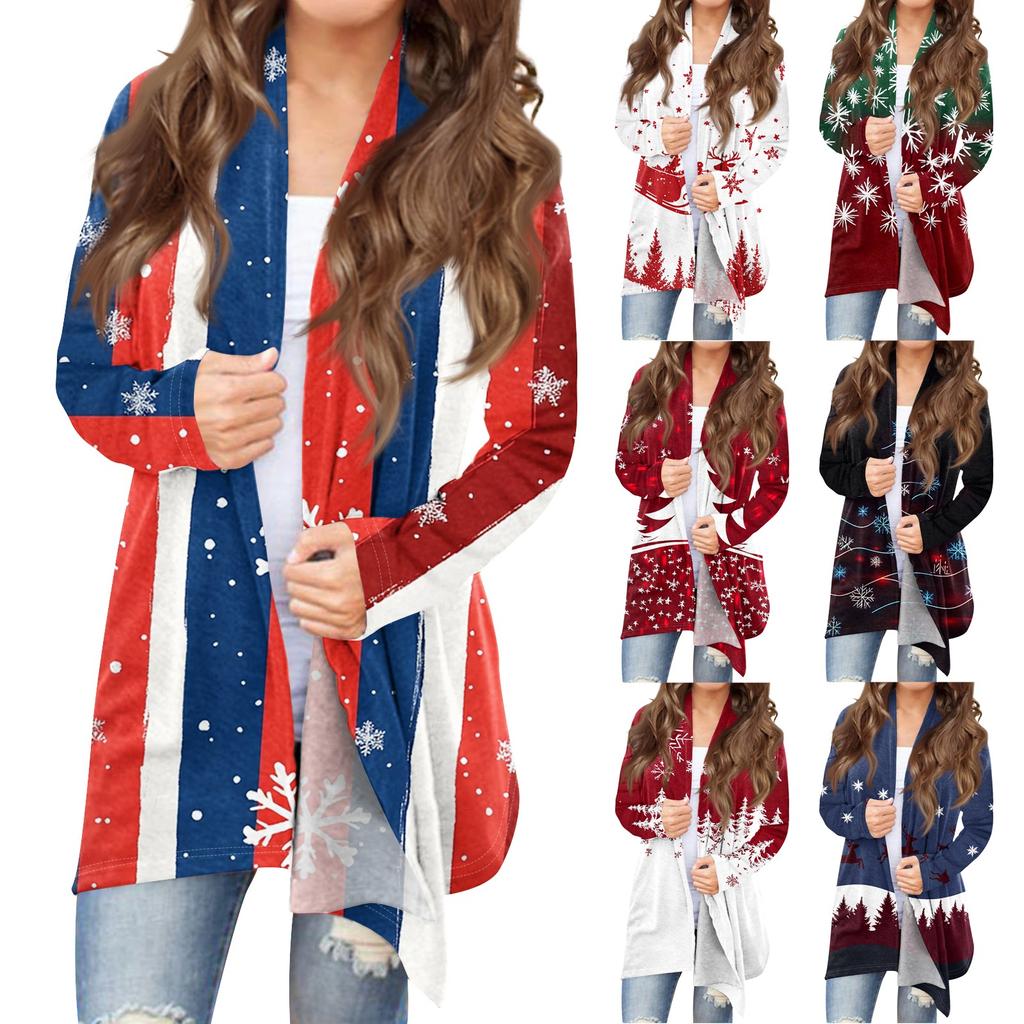 Women's Fashion Casual Printed Medium Length Cardigan Jacket Coat