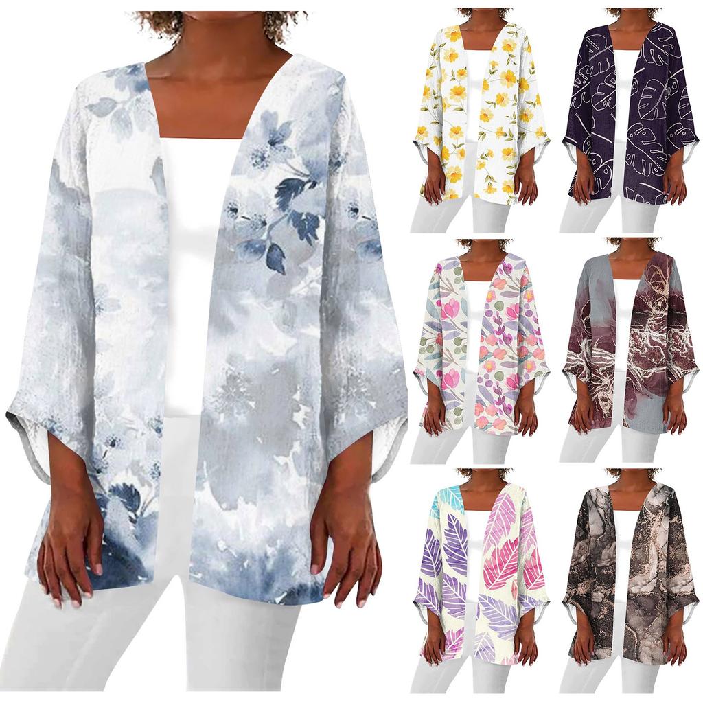 Women's Casual Fashion Printed Lightweight Medium Length Jacket Cardigan