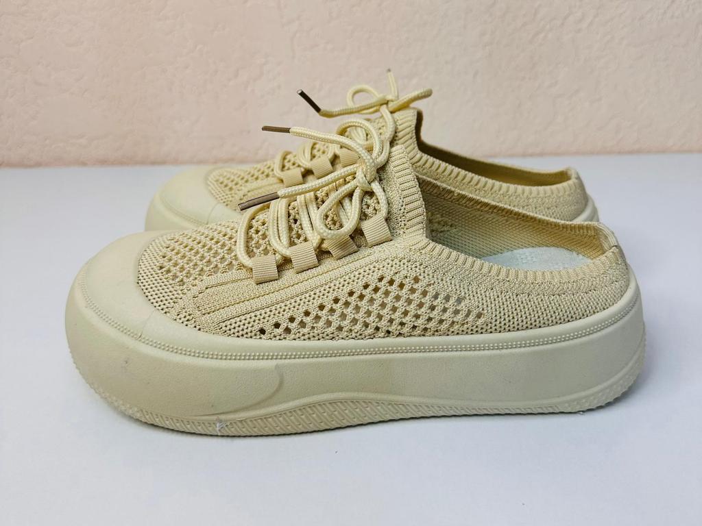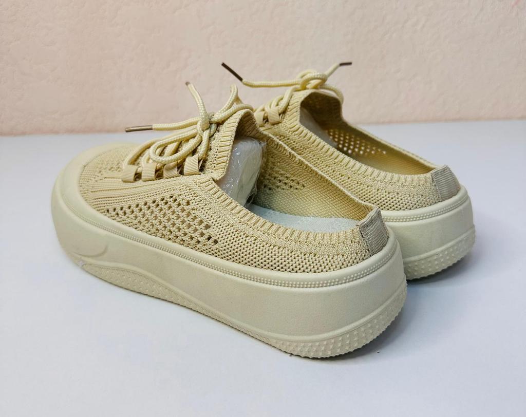 Женские кроссовки без задника сабо 3 цвета на выбор Размерный ряд от 35 до 41 размера На длину стопы 24 см размер 39 с небольшим запасом. Модель очень интересная, втоже время удобная, практичная, комфортная. Верх трикотажный в сеточку, нога не будет потеть, подошва толстая, полиуретан. Кроссовки лёгкие, на ноге не ощущаются Есть шнурки, можно регулировать ширину. Пришли хорошо упакованы без постороннего запаха К покупке рекомендую продавца и кроссовки.