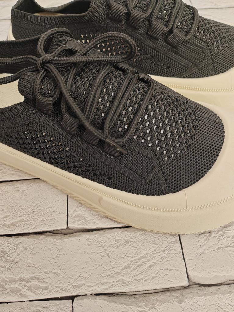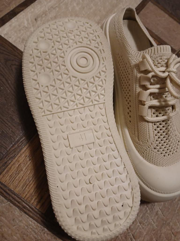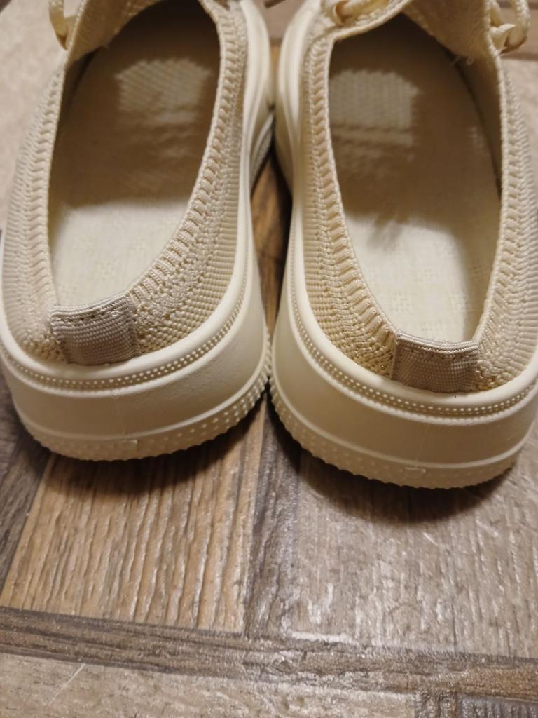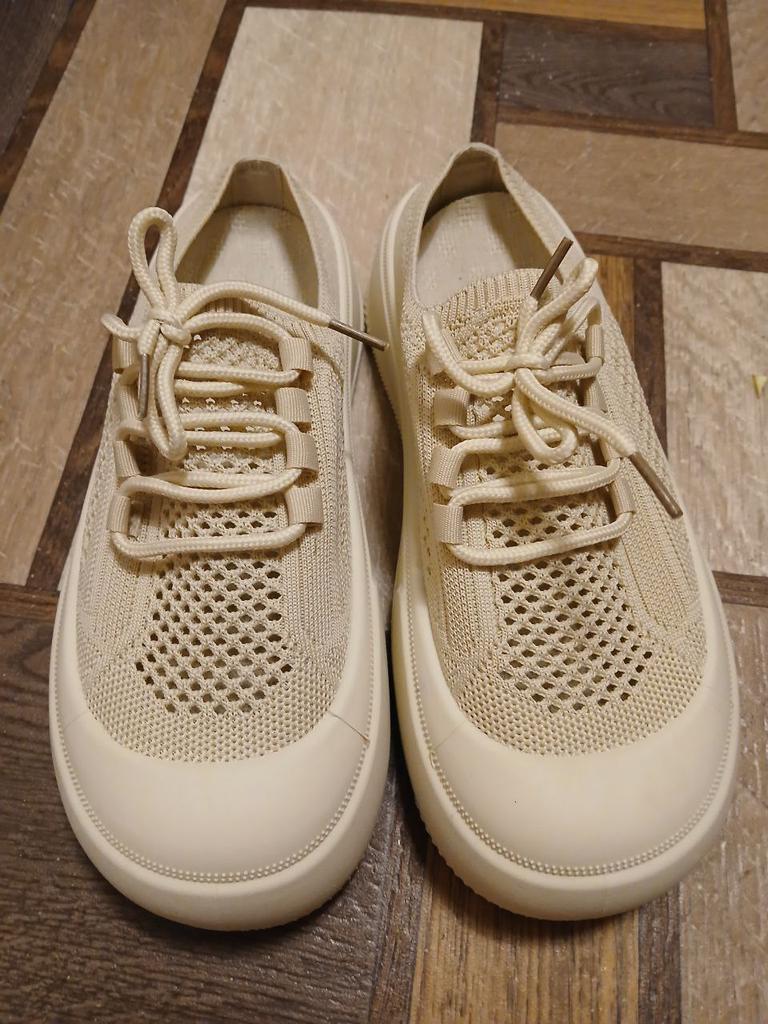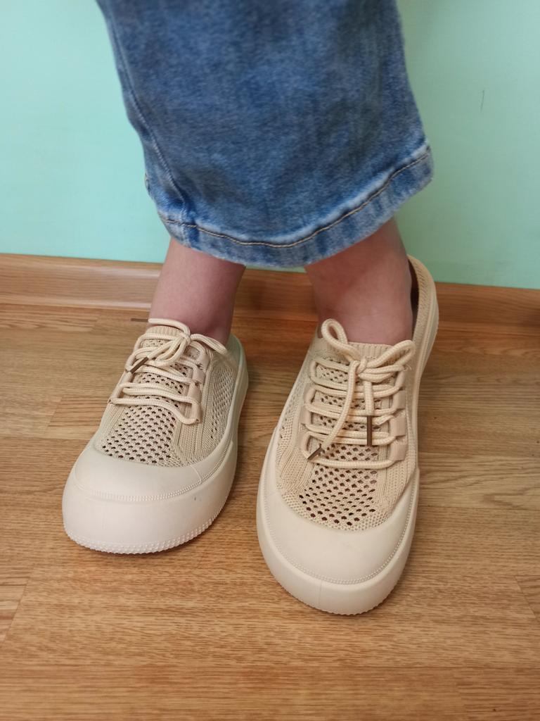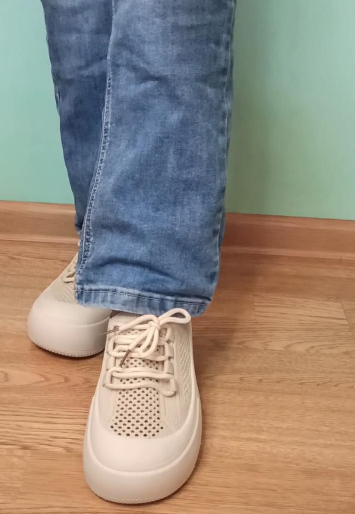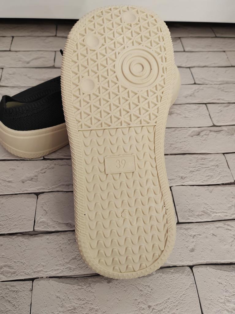 ❤️👍Кроссовки-шлёпанцы. Модель очень интересная и необычная – это что-то среднее между кроссовками и лёгкими шлёпанцами. Верх выполнен из мягкого трикотажа, есть шнурки, благодаря которым можно подогнать обувь по ноге, чтобы сидела комфортно. Ткань дышащая, нога в них не потеет, чувствуется лёгкость. Подошва белая, толстая и упругая. Она хорошо амортизирует при ходьбе, идёшь мягко и удобно, будто в спортивной обуви, но при этом ощущение лёгкости как у летних шлёпанцев. Толстая подошва немного добавляет роста и делает внешний вид обуви более современным. Заказала 41 размер подошёл на стопу 25.5 см идеально – сидят удобно, нигде не жмут, нога хорошо зафиксирована. На вид они стильные, универсальные – подойдут и к спортивному образу, и к повседневной одежде. Особенно понравилось, что обувь лёгкая и быстро надевается, как шлёпанцы, но при этом держится на ноге надёжно, как кроссовки. В целом покупкой довольна: удобно, практично и смотрится оригинально. Отличный вариант для лета и активных прогулок.