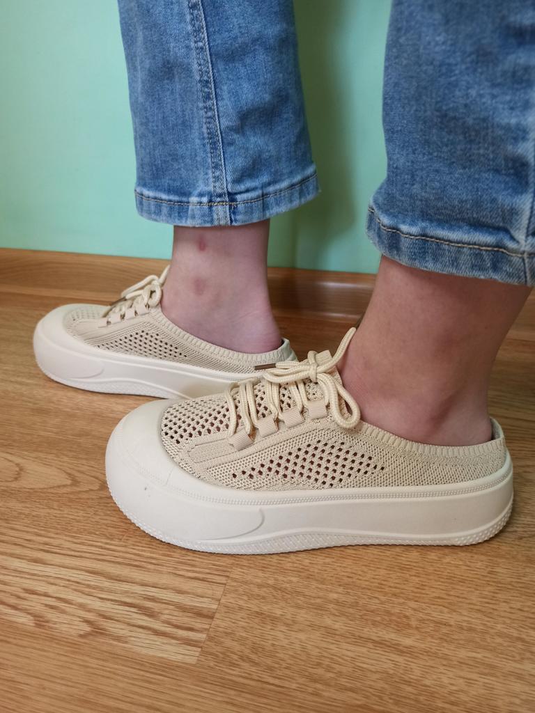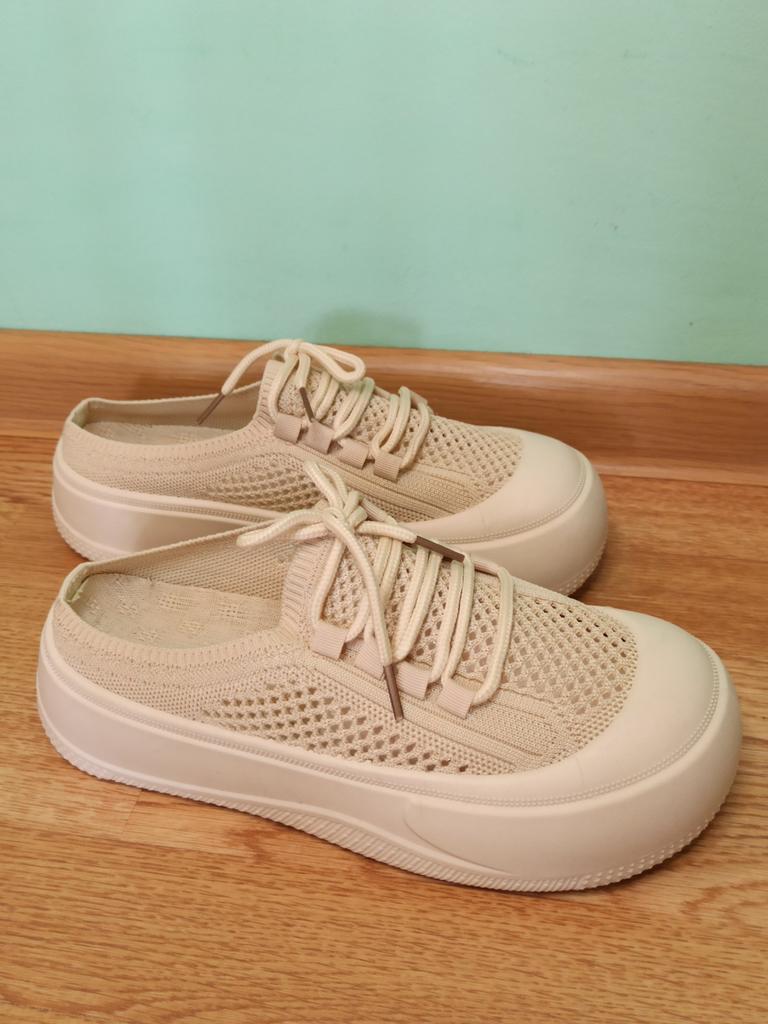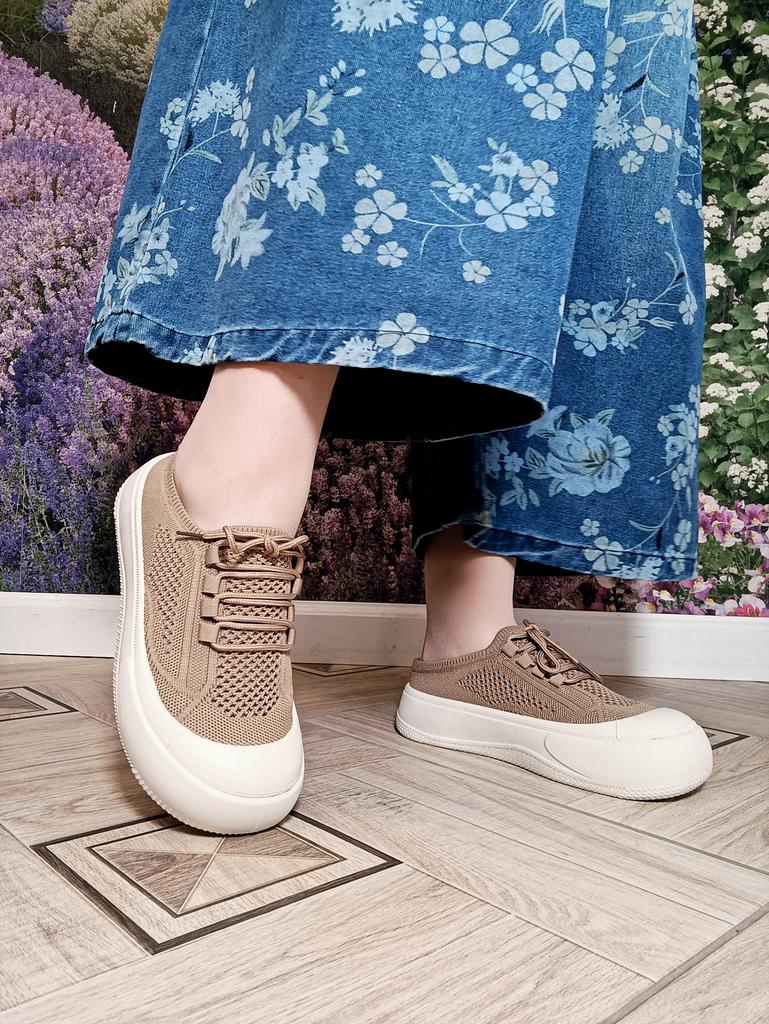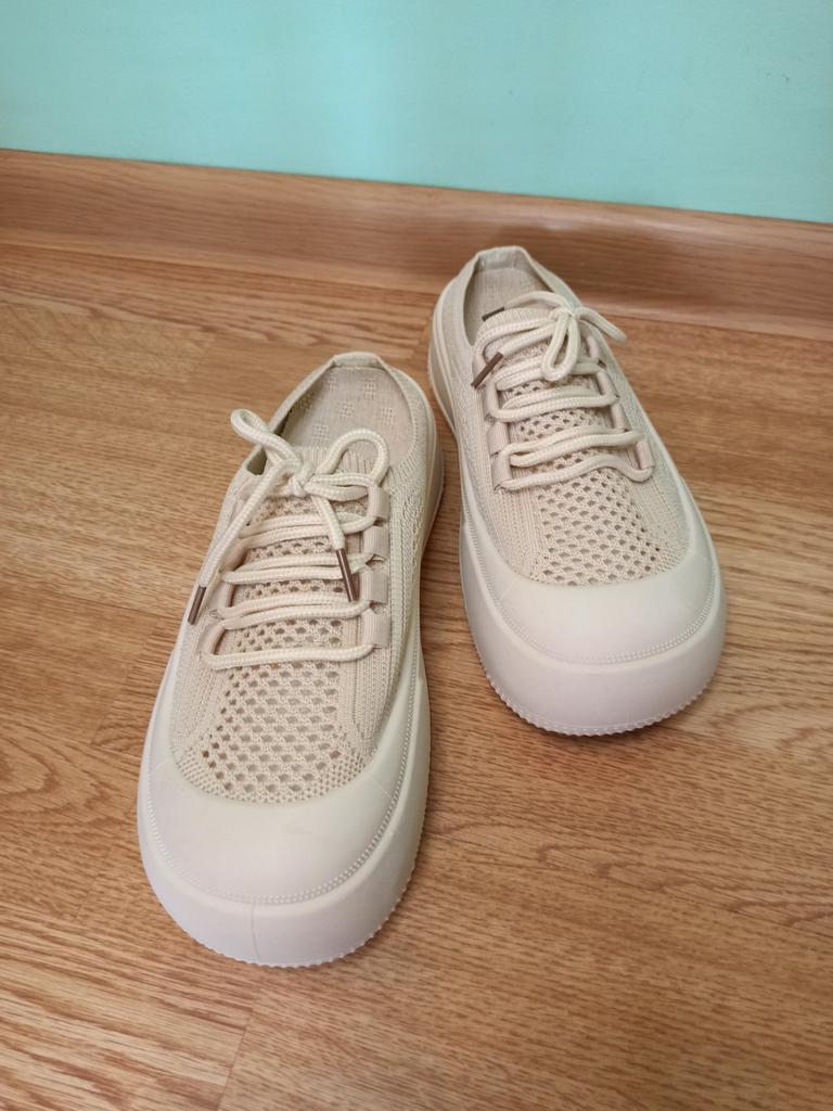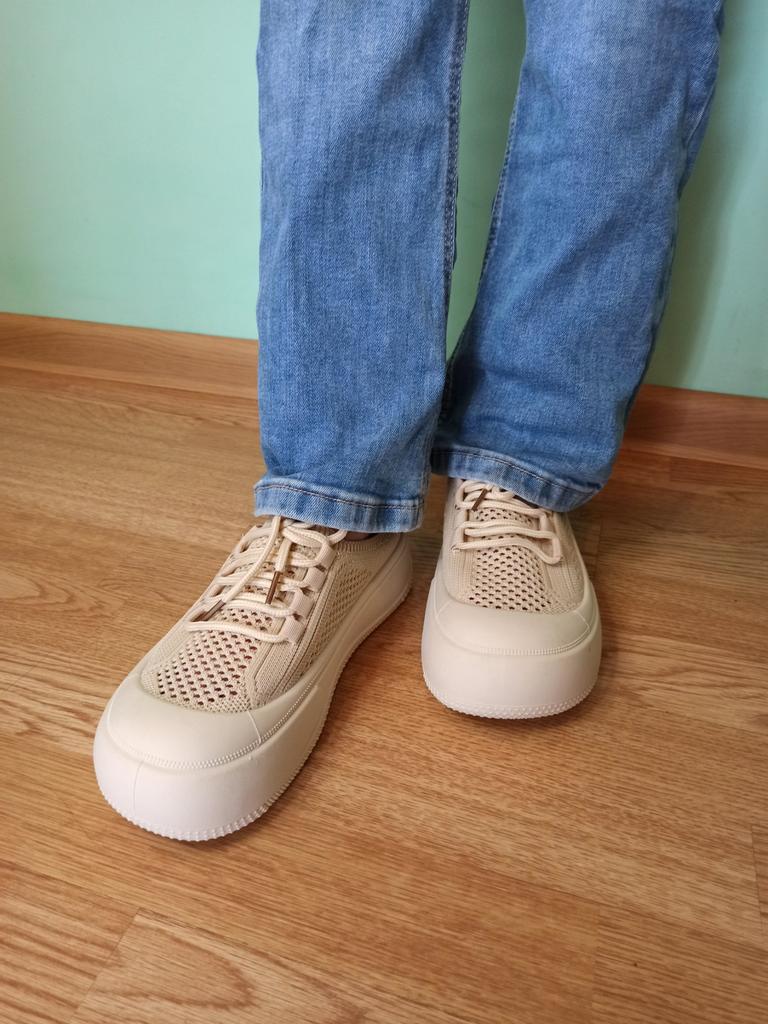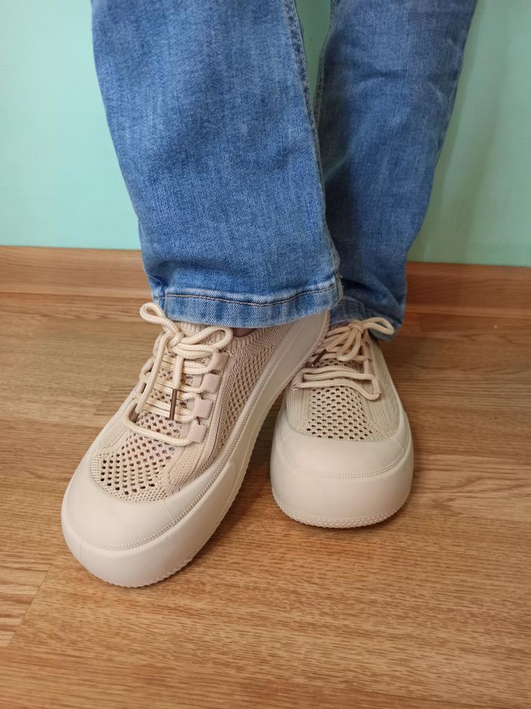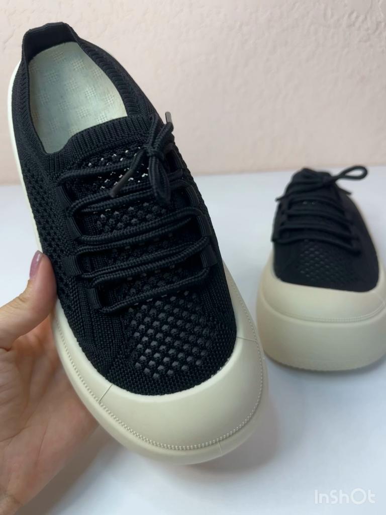 ❤️👍Кроссовки-шлёпанцы. Модель очень интересная и необычная – это что-то среднее между кроссовками и лёгкими шлёпанцами. Верх выполнен из мягкого трикотажа, есть шнурки, благодаря которым можно подогнать обувь по ноге, чтобы сидела комфортно. Ткань дышащая, нога в них не потеет, чувствуется лёгкость. Подошва белая, толстая и упругая. Она хорошо амортизирует при ходьбе, идёшь мягко и удобно, будто в спортивной обуви, но при этом ощущение лёгкости как у летних шлёпанцев. Толстая подошва немного добавляет роста и делает внешний вид обуви более современным. Заказала 41 размер подошёл на стопу 25.5 см идеально – сидят удобно, нигде не жмут, нога хорошо зафиксирована. На вид они стильные, универсальные – подойдут и к спортивному образу, и к повседневной одежде. Особенно понравилось, что обувь лёгкая и быстро надевается, как шлёпанцы, но при этом держится на ноге надёжно, как кроссовки. В целом покупкой довольна: удобно, практично и смотрится оригинально. Отличный вариант для лета и активных прогулок.