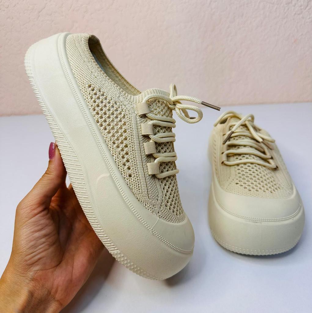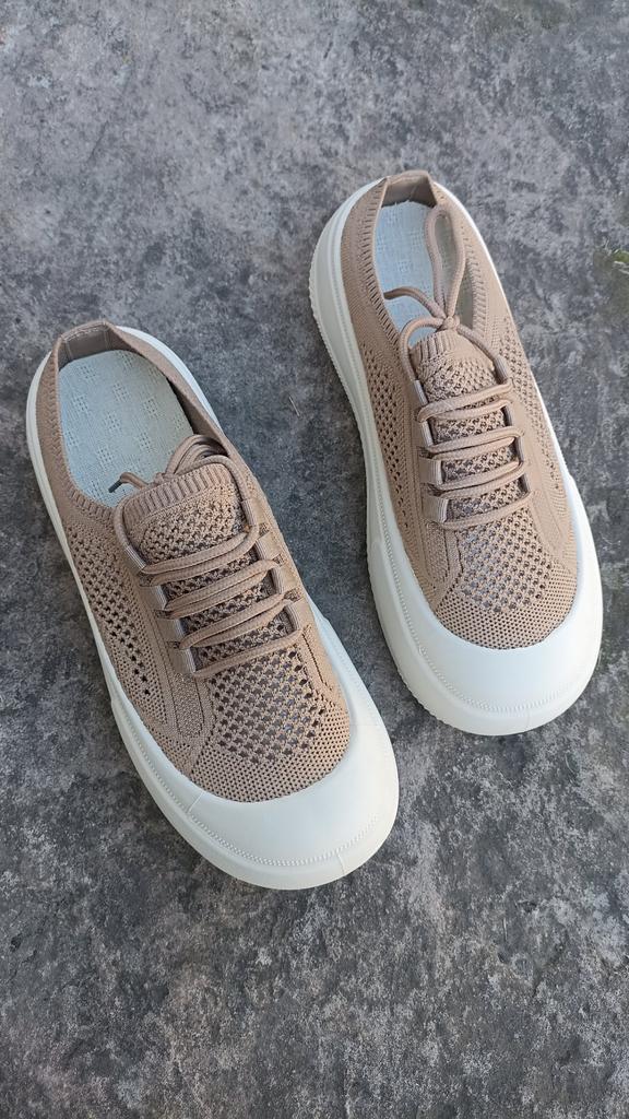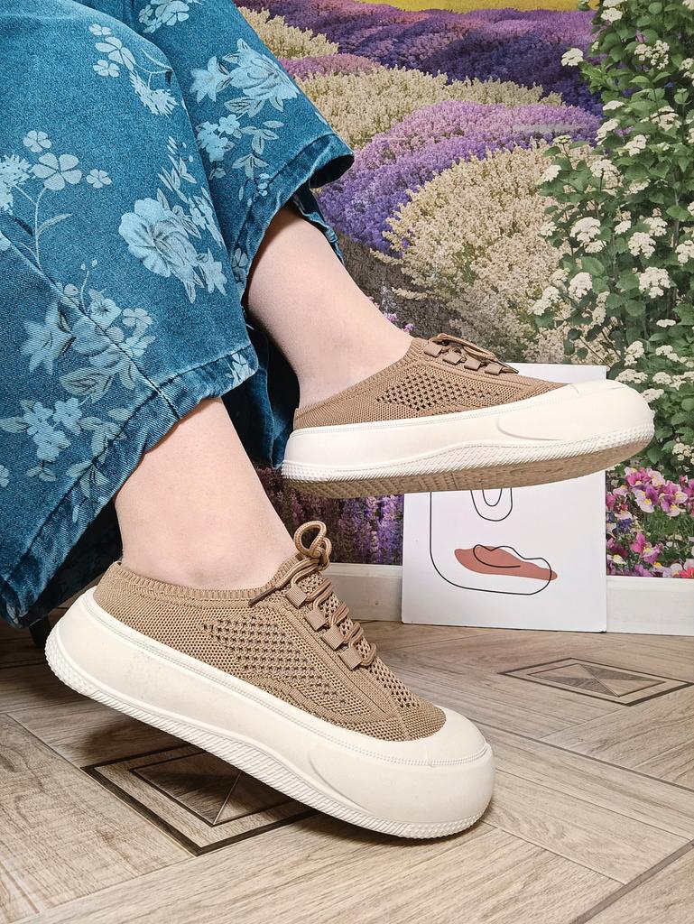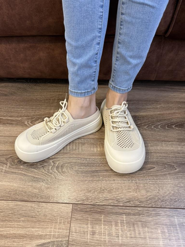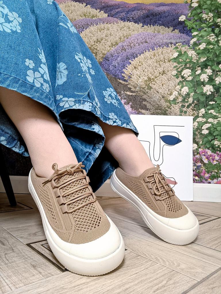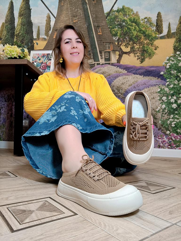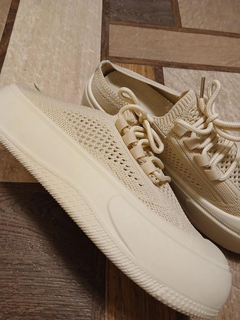 ❤️👍Кроссовки-шлёпанцы. Модель очень интересная и необычная – это что-то среднее между кроссовками и лёгкими шлёпанцами. Верх выполнен из мягкого трикотажа, есть шнурки, благодаря которым можно подогнать обувь по ноге, чтобы сидела комфортно. Ткань дышащая, нога в них не потеет, чувствуется лёгкость. Подошва белая, толстая и упругая. Она хорошо амортизирует при ходьбе, идёшь мягко и удобно, будто в спортивной обуви, но при этом ощущение лёгкости как у летних шлёпанцев. Толстая подошва немного добавляет роста и делает внешний вид обуви более современным. Заказала 41 размер подошёл на стопу 25.5 см идеально – сидят удобно, нигде не жмут, нога хорошо зафиксирована. На вид они стильные, универсальные – подойдут и к спортивному образу, и к повседневной одежде. Особенно понравилось, что обувь лёгкая и быстро надевается, как шлёпанцы, но при этом держится на ноге надёжно, как кроссовки. В целом покупкой довольна: удобно, практично и смотрится оригинально. Отличный вариант для лета и активных прогулок.