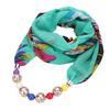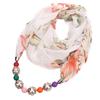 Beads Pendant Floral Print Necklace Scarf Simple Ethnic Style Vintage Chiffon Scarf for Home