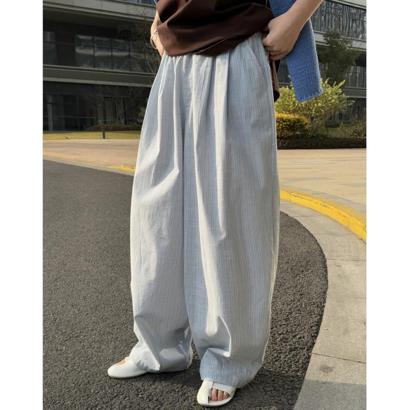 Johnature Korean Lazy Relaxed Striped Women Pants Spring Summer Casual Elastic Waist Loose Wide-leg Trousers — buy online with free worldwide shipping!