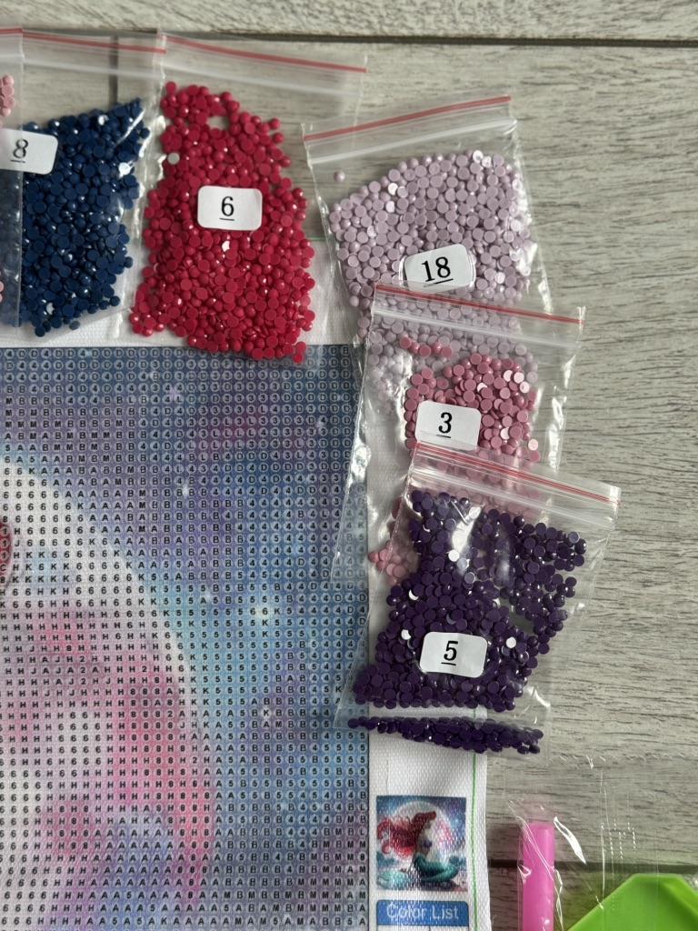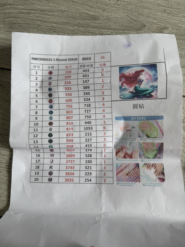 In order to avoid the lack of diamonds, please don't throw away the remaining diamonds after you put the corresponding symbols, put them in a small self-sealing bag in the package, and write the diamond number. After you have finished the whole plastering, you can throw away the extra diamonds, or you can keep it yourself, thank you!