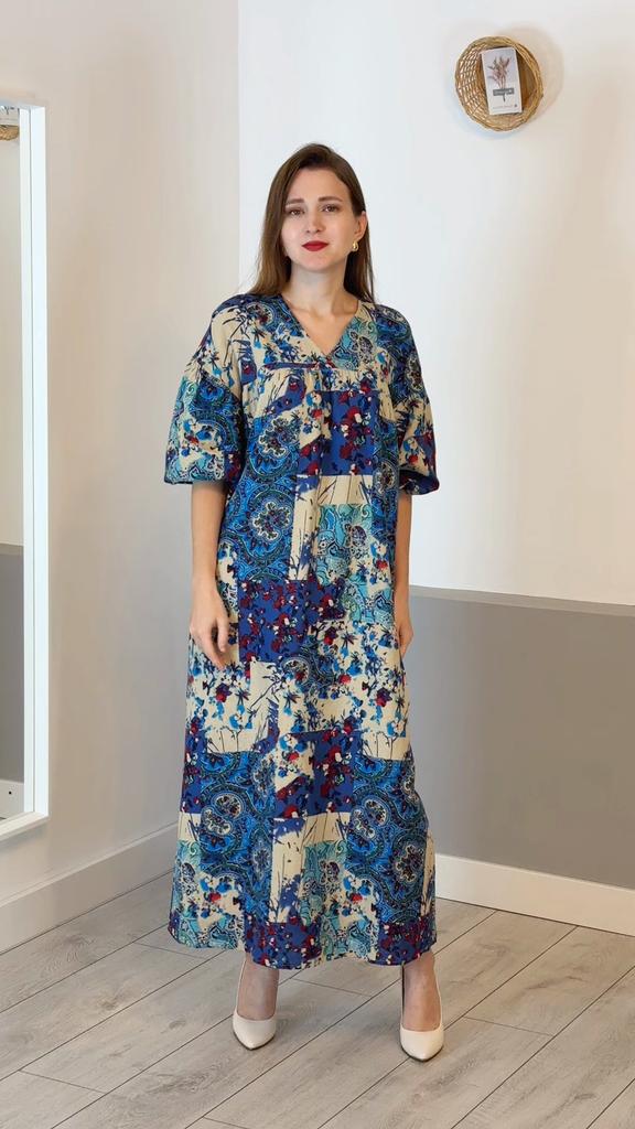 ZANZEA Women Summer Print Casual V-Neck Loose 3/4 Sleeve Long Dress — buy online with free worldwide shipping!