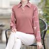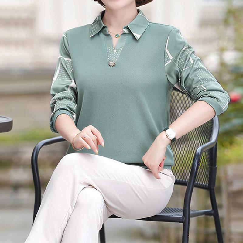 Casual Fashion Solid Patchwork Printed Shirt Spring Autumn Office Lady Polo-Neck Long Sleeve Loose Pullover Ladies Clothing