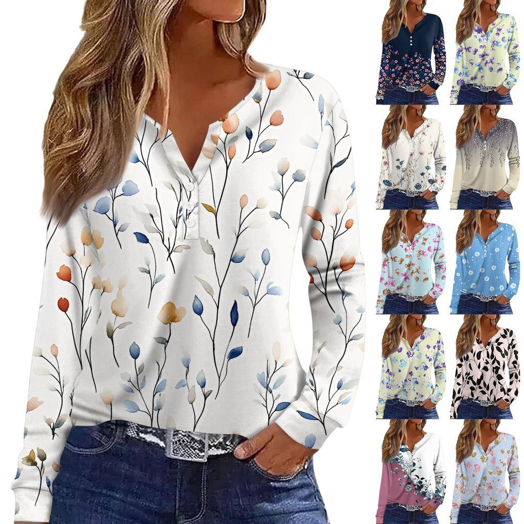 Women's T Shirt Tee Button Long Sleeve Daily Weekend Fashion Basic V- Neck Regular Top