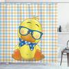Duck Shower Curtain Cartoon Character Taking A Bath Colorful Drops Backdrop Dots,Cloth Fabric Bathroom Curtains with Hooks
