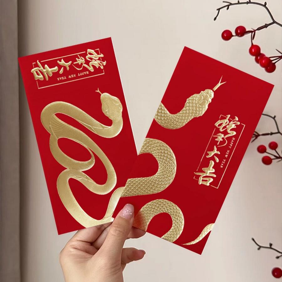 10pcs 2025 Year of the Snake Spring Festival Red Envelope Paper Bag Chinese New Year Restaurant Store Decoration Storage Bag