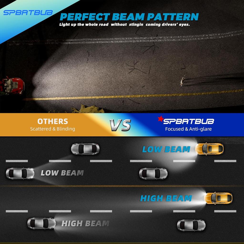 🚗【238% Brighter/Power Saving】These headlight bulbs are 2.38 times brighter than the originals, with each bulb at 100w and a crisp 6000K white beam. Equipped with new chips, they pump out up to 30000 lumens combo. The beam pattern is spot-on with sharp cut-off lines—no dark spots, no flickering, no flashing. Plus, they’re 100% more energy-efficient compared to your standard halogen bulbs.