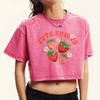Fresh Strawberry Fruits Printing Women Washed Tops Summer T-Shirt O-Neck Slim Tee Shirts Soft Fitness Streetwear