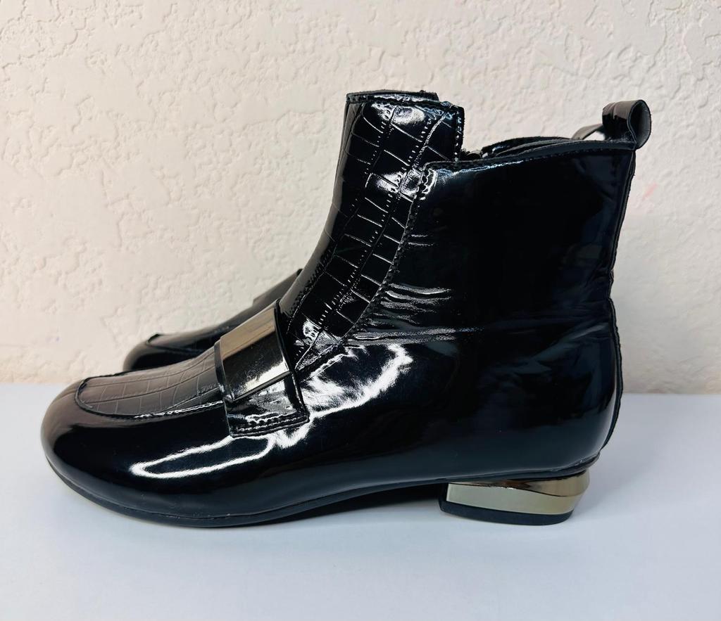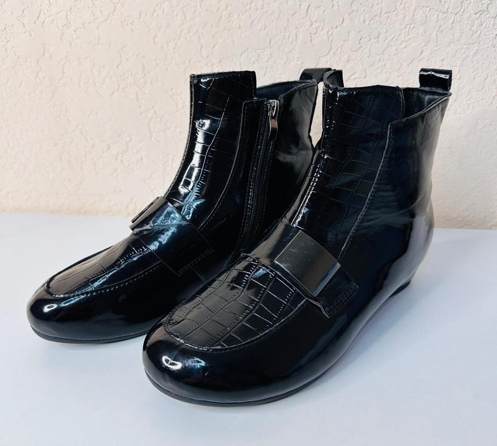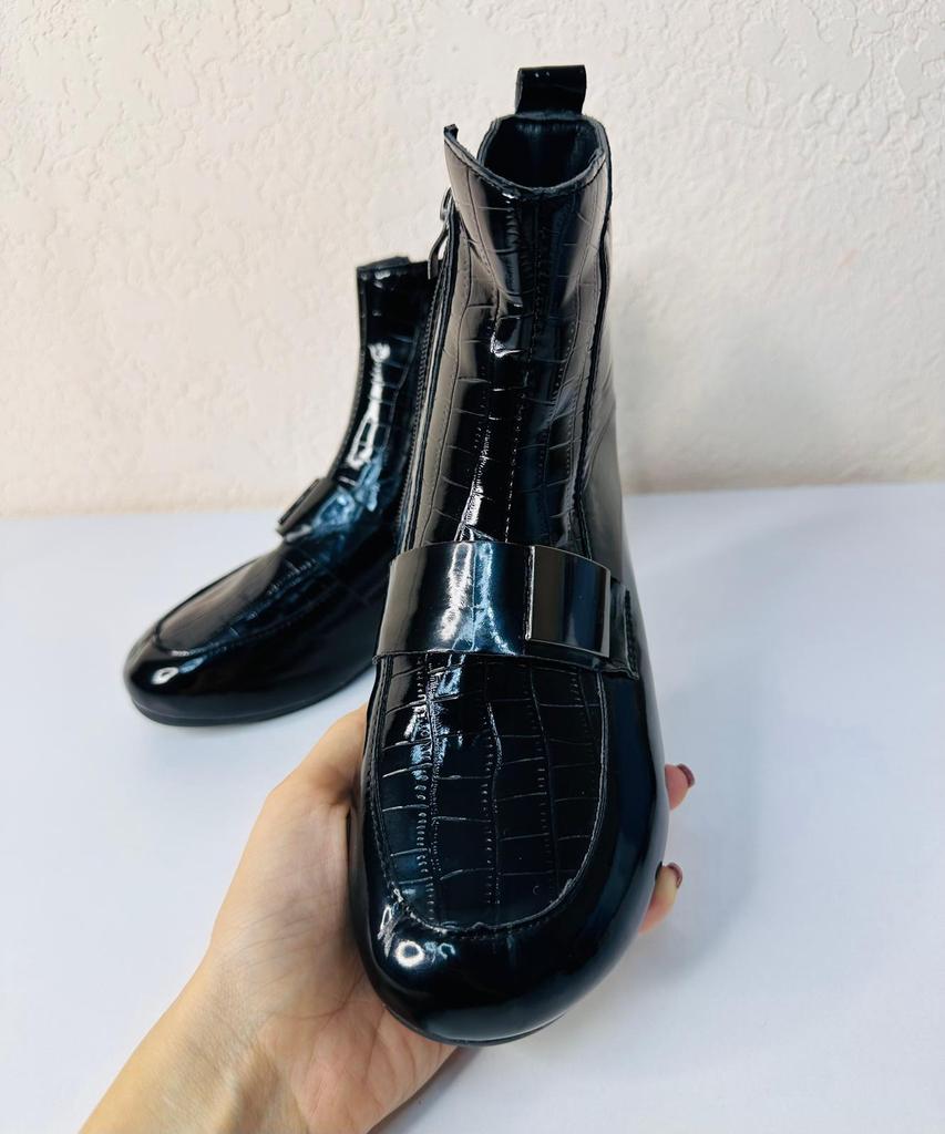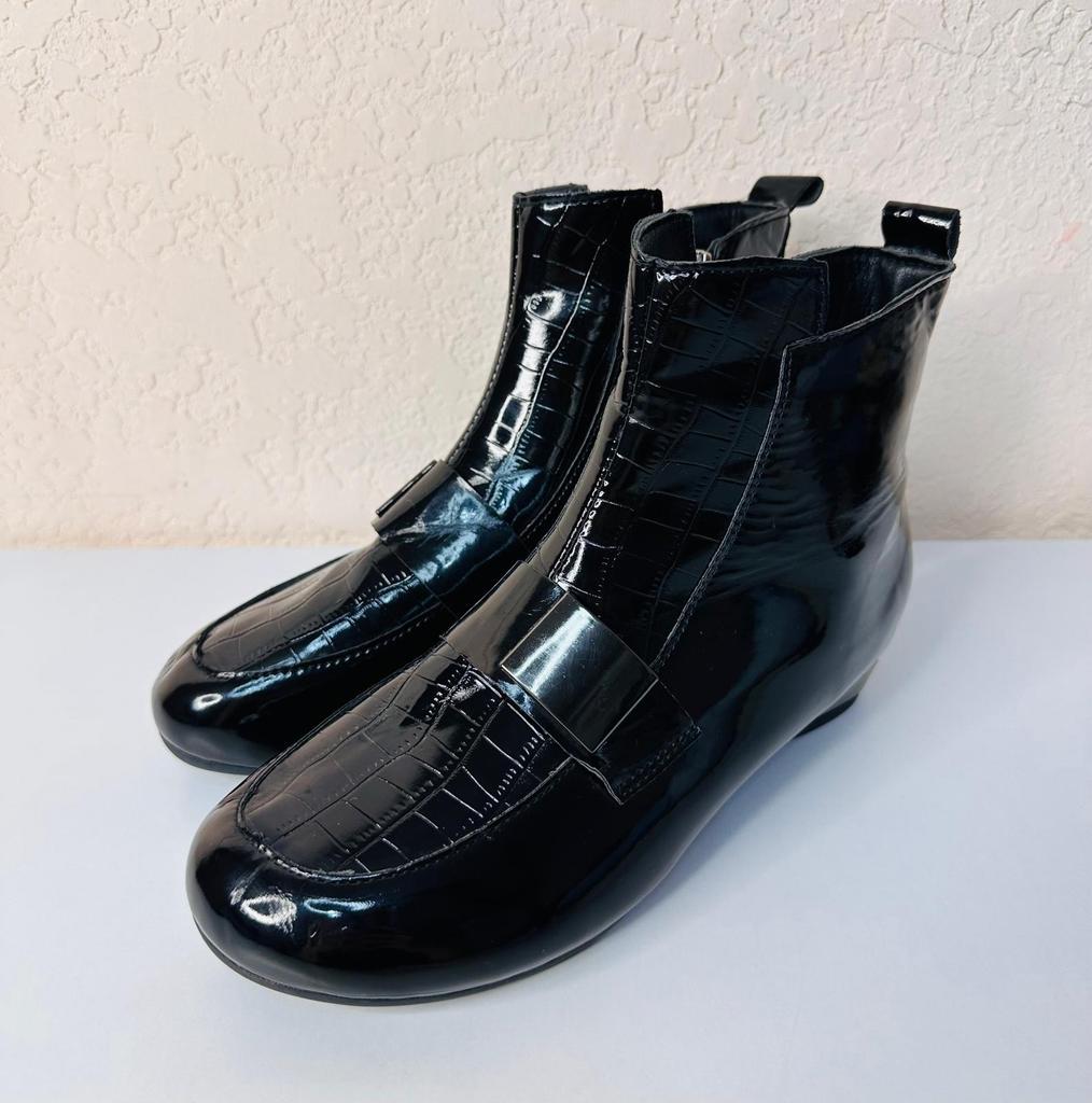 New Style Short Boots Women's Thick-heeled Flat Shoes Lacquer Leather Boots — buy online with free worldwide shipping!