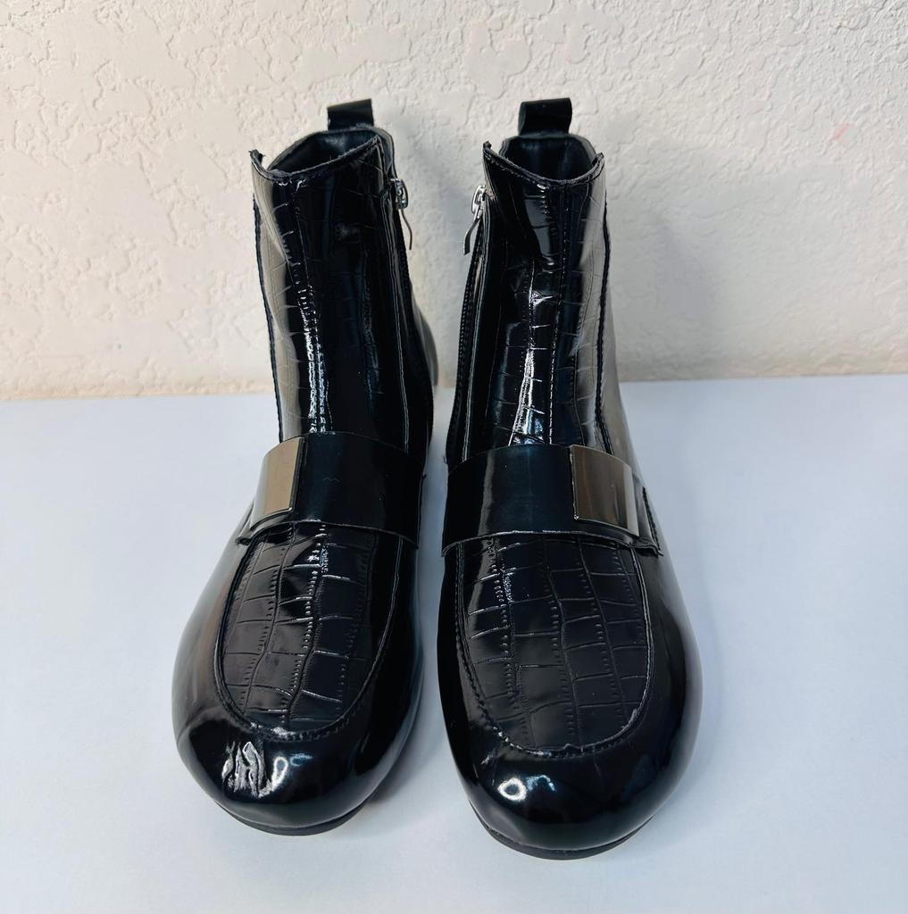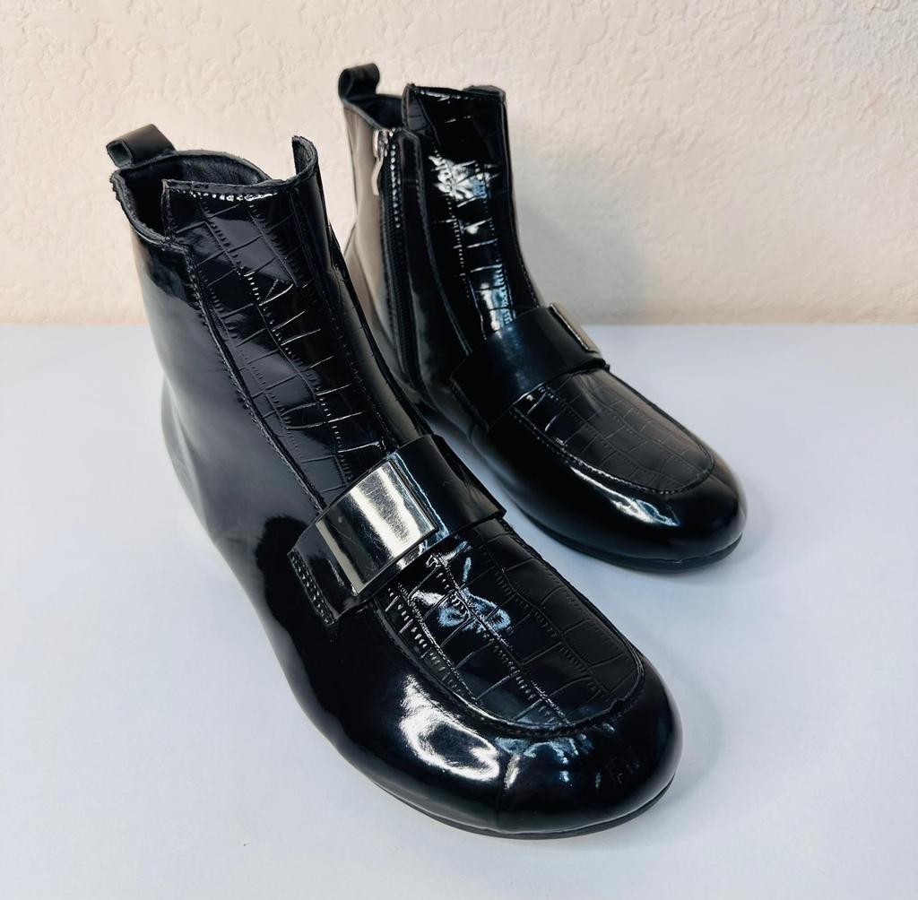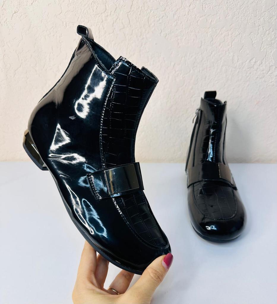 New Style Short Boots Women's Thick-heeled Flat Shoes Lacquer Leather Boots — buy online with free worldwide shipping!