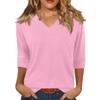 Women's Fashion Casual V Neck 3/4 Sleeve Loose Printed T-Shirt Ladies Top