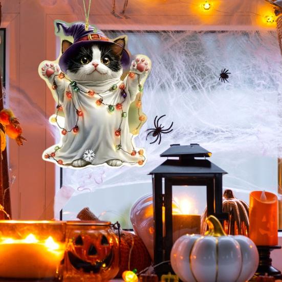 Car Halloween Rearview Mirror Hanging Pendant Cartoon Skull Cat Auto Interior Accessory 2D Flat Acrylic Hanging Charm for Car Backpack