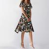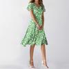 Women's Summer Casual Fashion Flower Print Dress V Neck Short Sleeve Short Skirt