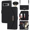 For Google Pixel 7 Pro 5G Stand Case Cross Texture PU Leather Wallet Phone Cover with Shoulder Strap/Makeup Mirror