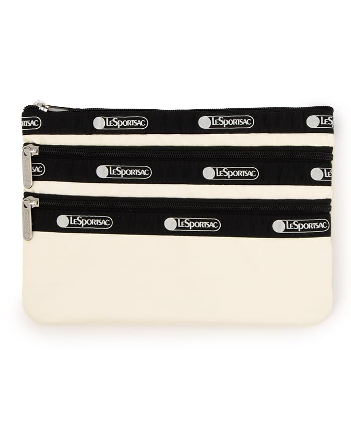 [Style description] A flat 3-tier zip pouch. Three pockets of different depths make it easy to organize small items. It can be used for a wide range of purposes, from daily use to travel, as a cosmetic pouch, pen case, wallet, passport case, etc. It is slim and fits easily into the gaps in your bag, making it easy to carry.