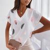 Feather 3D Printed T-shirts V-neck Short Sleeved Women's T-shirts