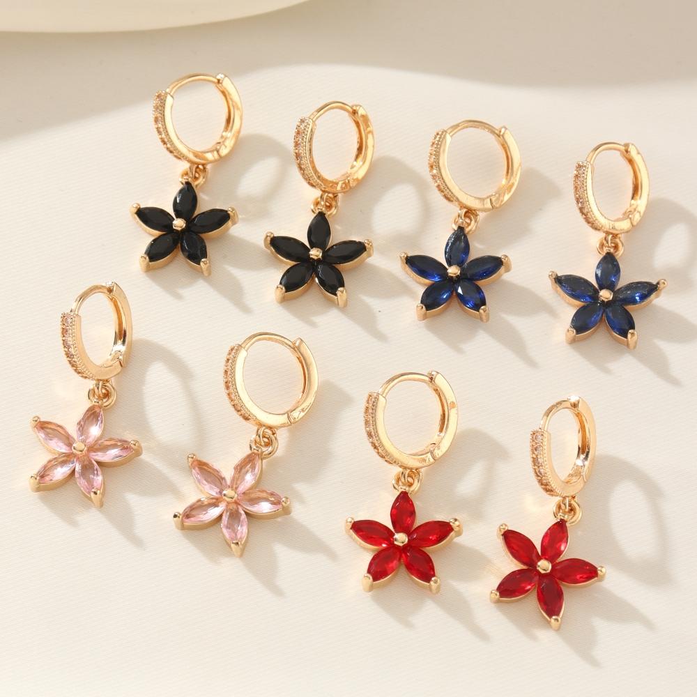 1 Pair Cute Flowers Dangle Earrings for Women Cubic Zirconia Jewelry Daily Wedding Party Accessories — buy online with free worldwide shipping!