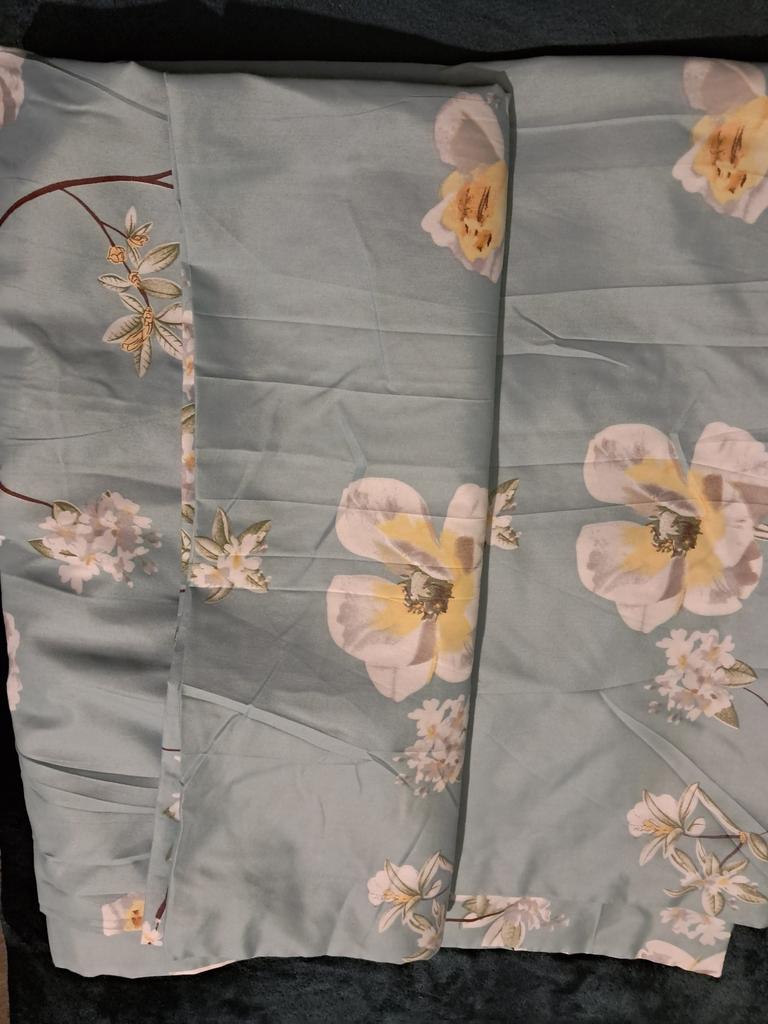 The order arrived as it should. The fabric is good, the color is slightly lighter than in the photo. But I am dissatisfied with it because only the duvet cover came from the four-piece set, and I don't understand where the two pillowcases and the sheet are.