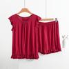 Enjoy ultimate comfort and elegance with this Women's Pajama Set, featuring a charming ruffle edge vest and matching shorts. Designed with lightweight, breathable modal fabric, this two-piece homewear ensemble is perfect for warm summer nights. The loose fit ensures unrestricted movement, while the intricate lace detailing adds a touch of sophistication. Perfect for lounging at home, this set promises a blend of style and comfort.
