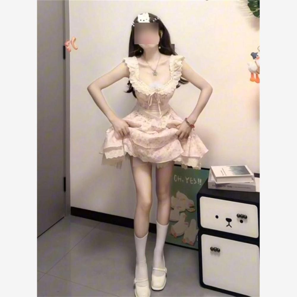 French Sweet Floral Dress Summer New Small Flying Sleeves Puffy Skirt Waist Thin Fairy Short Skirt Japanese Women