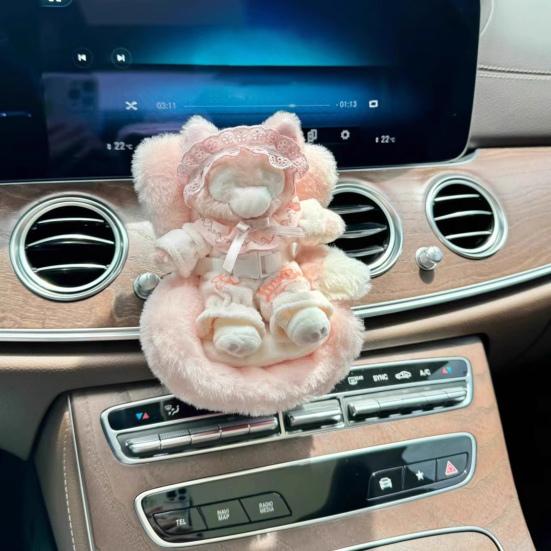 Unique Plush Doll Car Seat Design: Transform your car's interior with this whimsical plush doll car seat that attaches easily to vents, adding a touch of charm without occupying space.