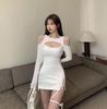 European & American Off-the-Shoulder Slimming Hollow-Out Dress