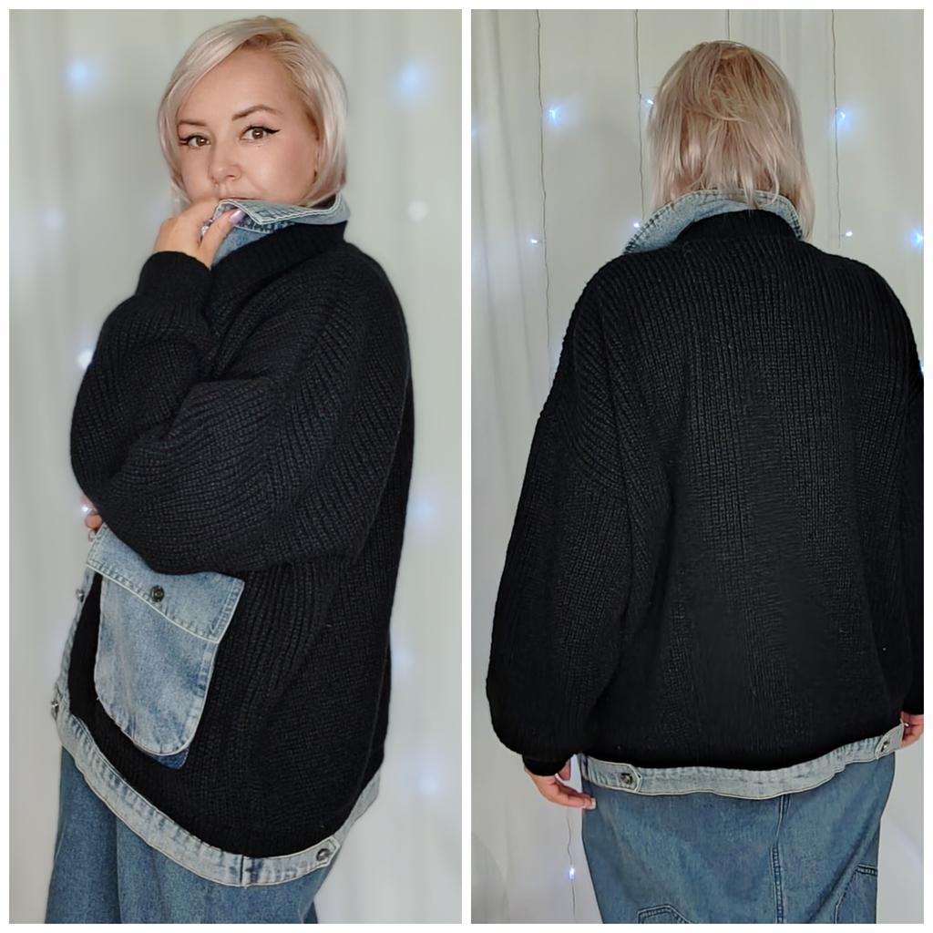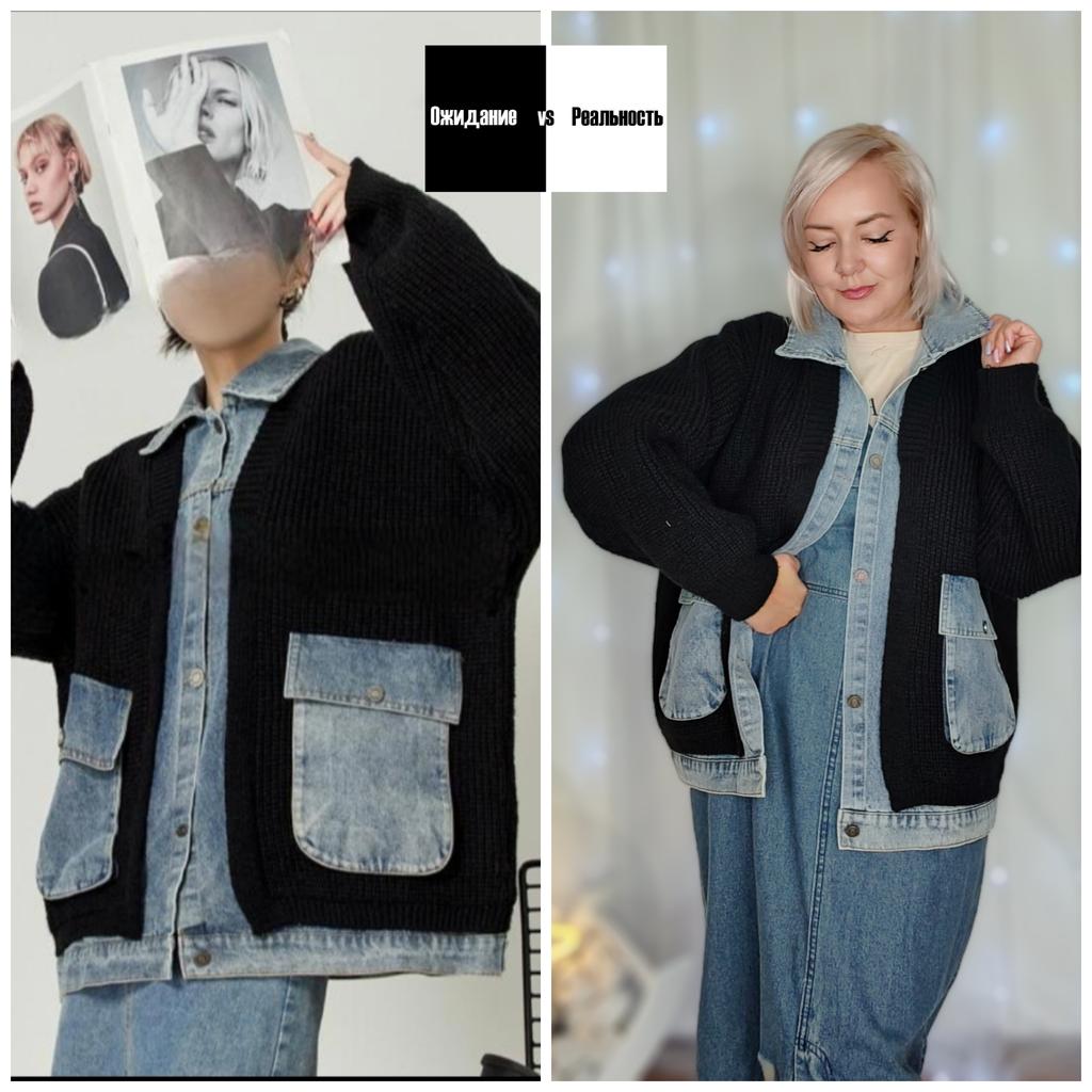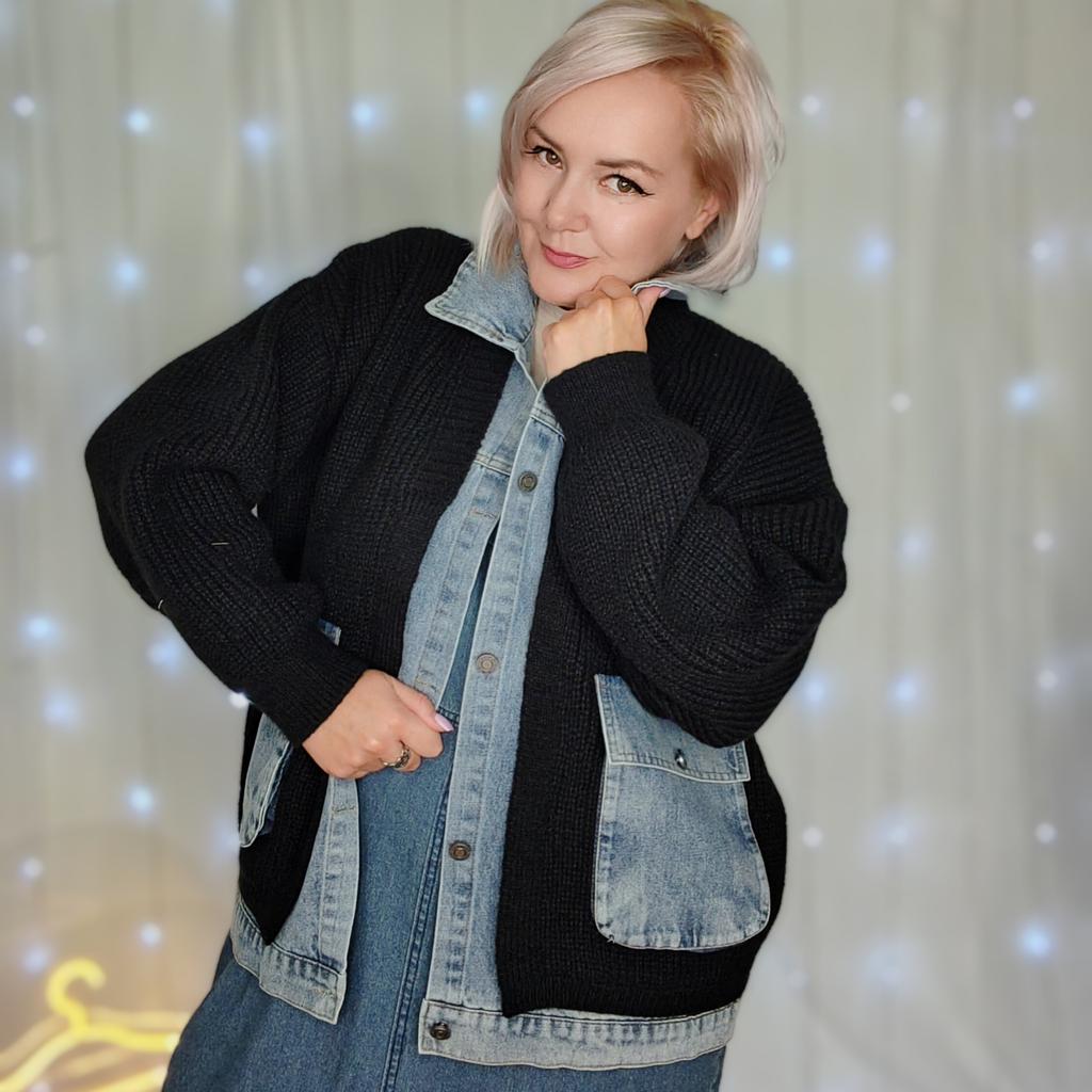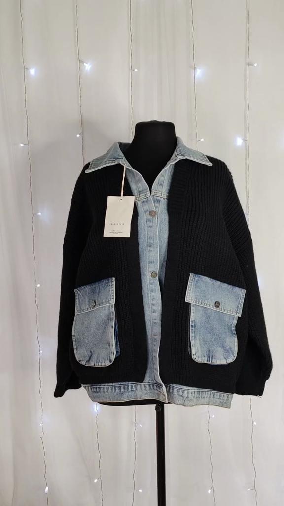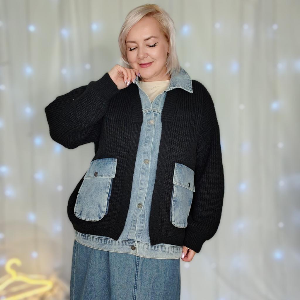 DIMANAF 2025 Autumn Jacket Women Sweaters Coat Black Patchwork Wadded Coat Cardigan Knitting Pockets Sweater — buy online with free worldwide shipping!