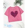 Summer Cotton Crop Tops Womens Pink Leopard Heart Prints Washed T-Shirts Distressed O-Neck Regular Fit Clothes