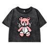 Lovely Puppet Bear Print Female Washed Short Tshirts Breathable T-Shirts Summer Soft Clothes Loose Distress Tshirts Women