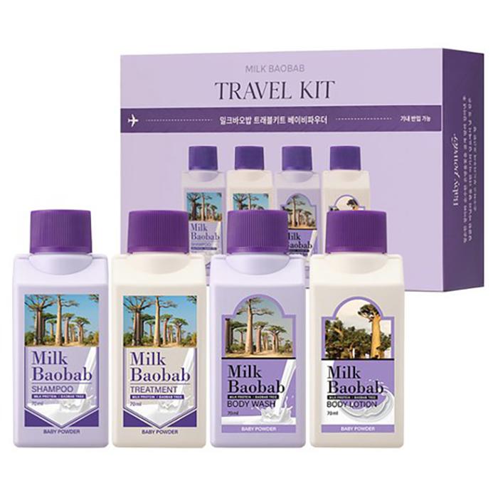 Milk Baobab Baby Powder Travel Kit – Shampoo, Treatment, Body Wash & Lotion Set, Korean