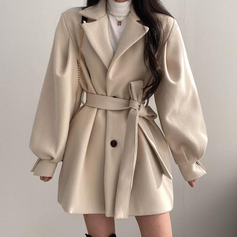 Korean Version of Chic Autumn and Winter Loose Style Coat Women's Woolen Suit Collar Mid-length Woolen Coat Women — buy online with free worldwide shipping!