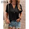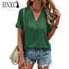 HNXC Women's Fashion Casual Solid Color Print Short Sleeve V Neck Blouses & Shirts