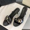 Elegant Round Open Toe Mules Thin High Heels Slippers Sandals Fashion Metal Chain Designer Slides Women Party Prom Shoes