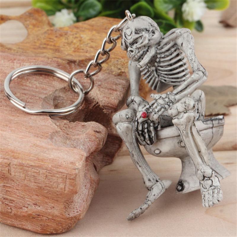 Creative Skull Keychain Pendant Toilet Ghost PVC Key Ring Car Keyring Pendant Accessories Scary Skull Best Halloween Spoof Gifts