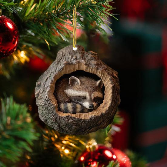 Elevate your Christmas tree's allure with this delightful ornament featuring adorable animals nestled within tree cavities, infusing a whimsical and natural ambiance into your holiday decorations.