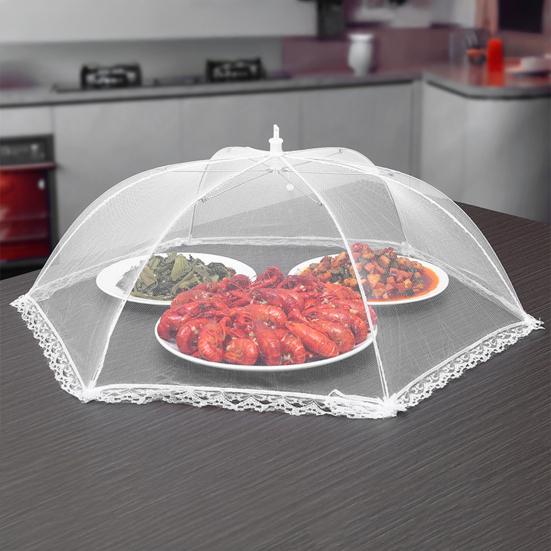 Debris-Free Dining: Featuring a moderate lace edge, this food cover effectively isolates cutlery from debris, ensuring a cleaner and more enjoyable dining experience. Protect your meals from unwanted intrusions without compromising visibility or style.