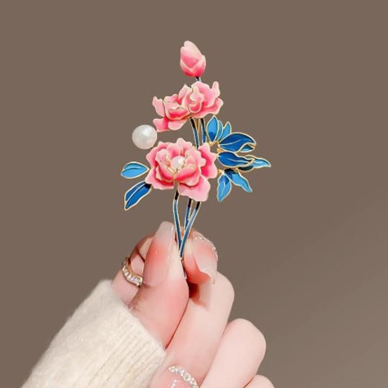 Chinese Style Enamel Peony Flowers Brooches For Women Clothing Coat Party Accessries Gifts
