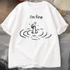 I'm Fine Back Print T-shirt Women Funny Mental Health T Shirt Humor Short Sleeve Loose Tshirt Loose Fashion Tees