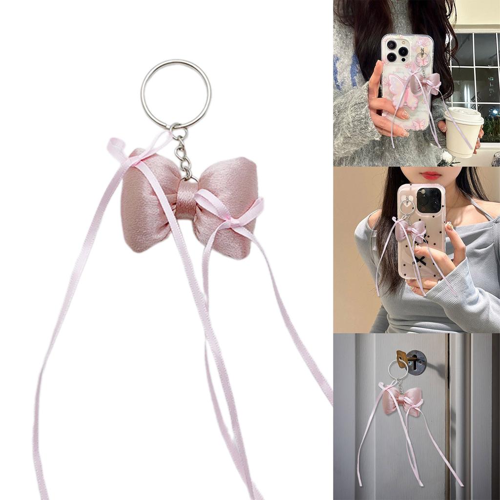Sweet Ribbon Bowknot Keychain Pendant Keyring Charm Lovely Hanging Decorations for Purse Bag Backpack Handbag Wallet