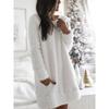 Women's Velvet Sleeping Dress - Comfortable Winter Home Robe with Pocket, Round Neck Solid Color Machine Washable Casual Wear, Soft Knitted Indoor — buy online with free worldwide shipping!