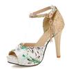 Female Sexy Sandals Peep Toe Stiletto 11cm Platform 2.5cm Buckle Strap Flower Shiny Metal Deocr 46 47 48 Mixed Color